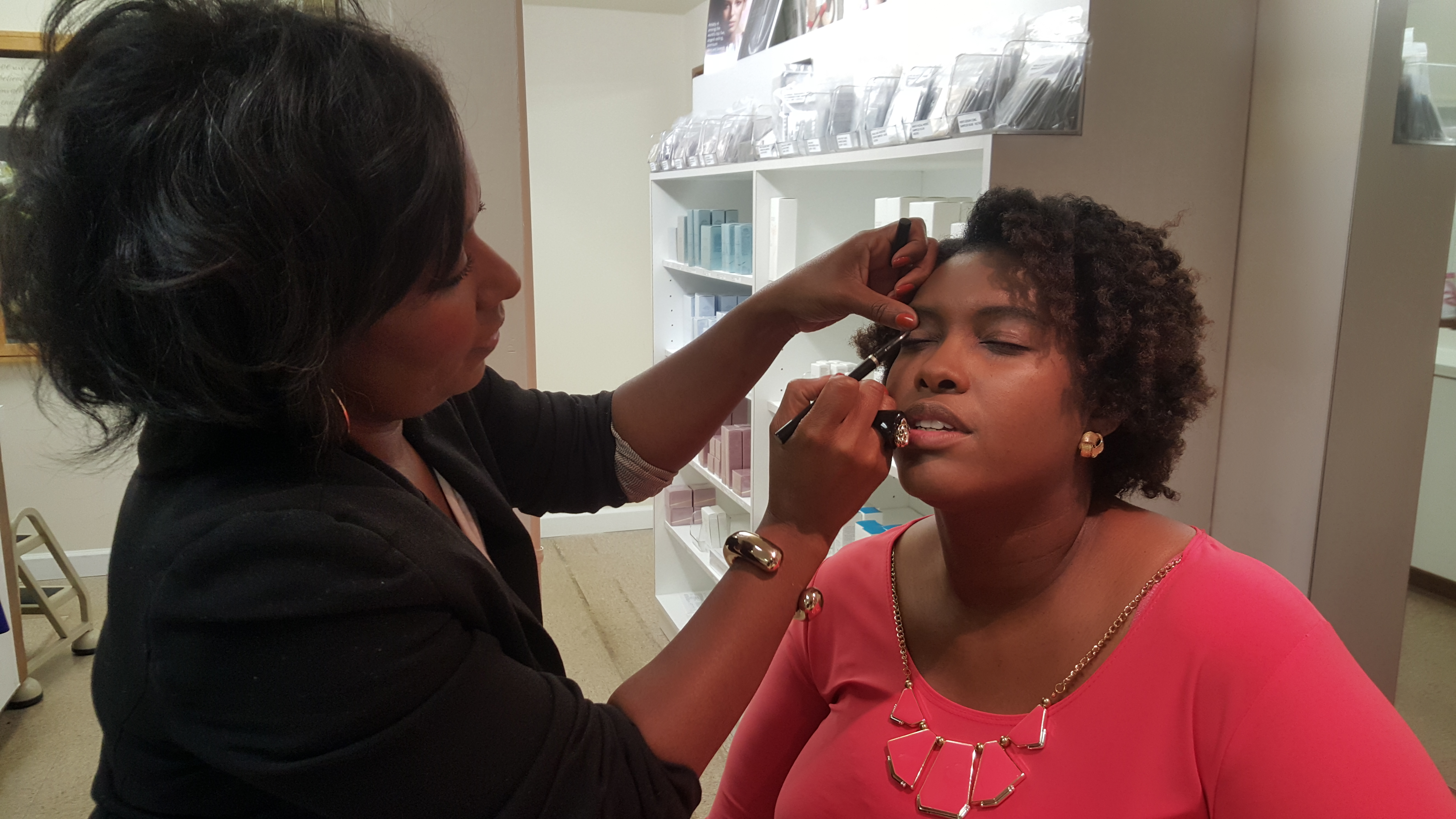 Do you remember that commercial from the ’80’s — Calgon, take me away! Well that was me on one stressful and unproductive Wednesday. That missing hour didn’t catch up with me until later that evening when it was time for my business meeting. The mascara had been washed away by unwanted tears and I barely had an ounce of inspiration to refresh my curls. By this time, I was really in need of being taken away. I needed pampering! Well lo and behold, there was a shoulder to lean on and an empty make-up chair with my name on it. I went from ghastly to glamorous in seconds! [Okay, so maybe it was just a few minutes longer], but thanks to my dear friend, Sondra Lewis, Beauty Expert at SondraLewisBeauty I was pampered with her artistic talents and transformed into an Artistry display. Let me tell you ladies, this truly was an example of what so many of us women need — to be enriched by each other through selfless examples of encouragement and unconditional love — Sondra is none other than a true paragon.